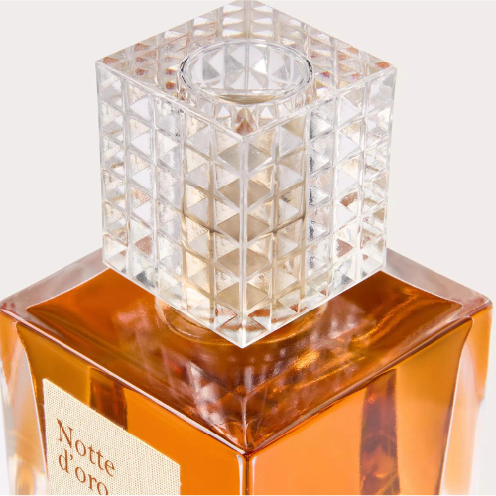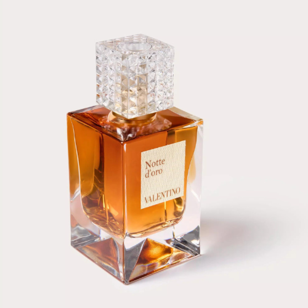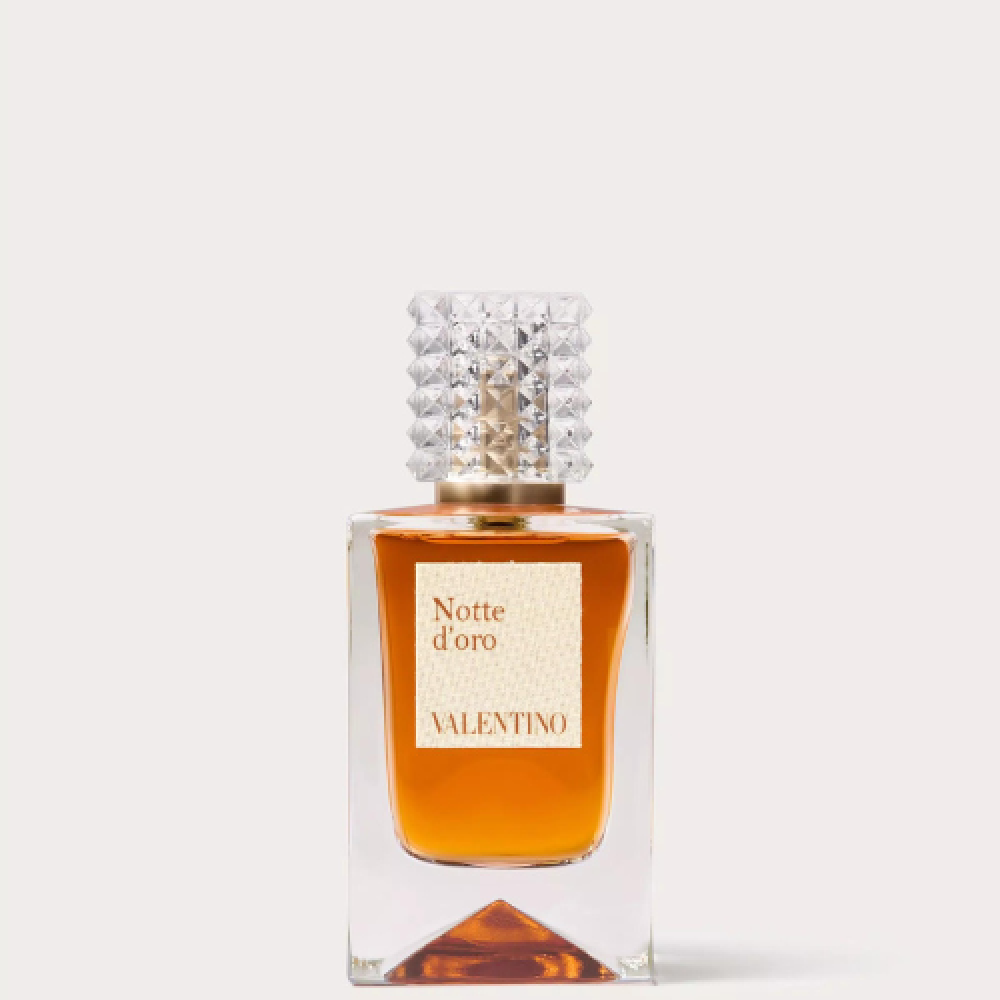 تقف الزجاجة الزجاجية المستطيلة أمام اختبار الزمن الحقيقي. شفافية تثبت أنه لا يوجد شيء تخفيه ولكن كل شيء لاكتشافه. يعكس الغطاء المرصع المصنوع من الزجاج شعار Maison Valentino المميز، وهو المسمار، وهو شكل مربع وصليبي يكرم روما و"البوجناتو" الموجود في القصور الرومانية. شعار مميز يعبر عن هوية الدار على مر الزمن.